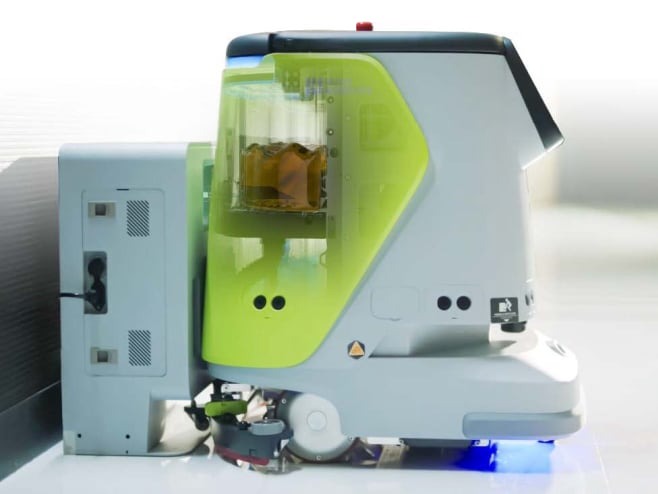 Der Roboter speichert seinen Aufgabenstatus und die Position und kehrt automatisch für den Ladevorgang zur Ladestation (optional) zurück, mit der Docking Station (optional) füllt er auch den Frischwassertank und lässt Schmutzwasser ab, ohne Menschliches Eingreifen.