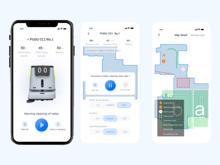 Der PUDU CC1 ist die smarte Lösung für die professionelle Bodenreinigung stark frequentierter, großflächiger Innenbereiche. Mit bis zu 12.000 m² Reinigungsleistung pro Tag und vier spezialisierten Reinigungsmodi – Nass-Scheuern, Saugen, Moppen und Schrubben – deckt der CC1 alle typischen Anforderungen im Innenbereich zuverlässig ab. Die jeweilige Funktion wird bedarfsgerecht eingerichtet – so ist der Roboter immer optimal auf die gewünschte Aufgabe abgestimmt. Dank 17.000 Pa Saugkraft, kantennahem Arbeiten und optionaler Türsteuer- und Aufzugnutzung ist der CC1 für komplexe Umgebungen bestens gerüstet. Wasserwechsel, Aufladen und das Erstellen von digitalen Reinigungsprotokollen erfolgen vollautomatisch.