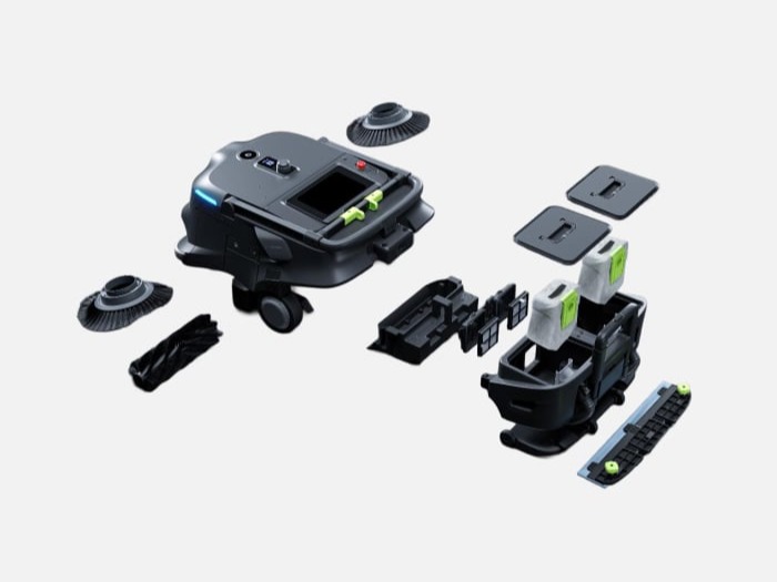 Modulare Komponenten sind für einen schnellen Austausch konzipiert. Staubwischer, Staubbehälter, Abfallbehälter, Hauptbürste und Seitenbürsten lassen sich in Sekundenschnelle ohne Werkzeug austauschen – das spart Zeit und senkt Wartungskosten.